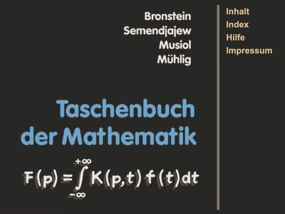 Bronstein, Ilja N. / Mühlig, Heiner / Musiol, Gerhard / Semendjajew, Konstantin A.: Taschenbuch der Mathematik (Bronstein) als HTML-Struktur.